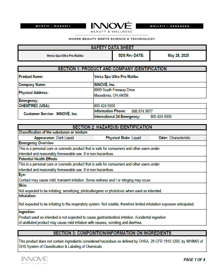 VersaSpa Pro Product Labels